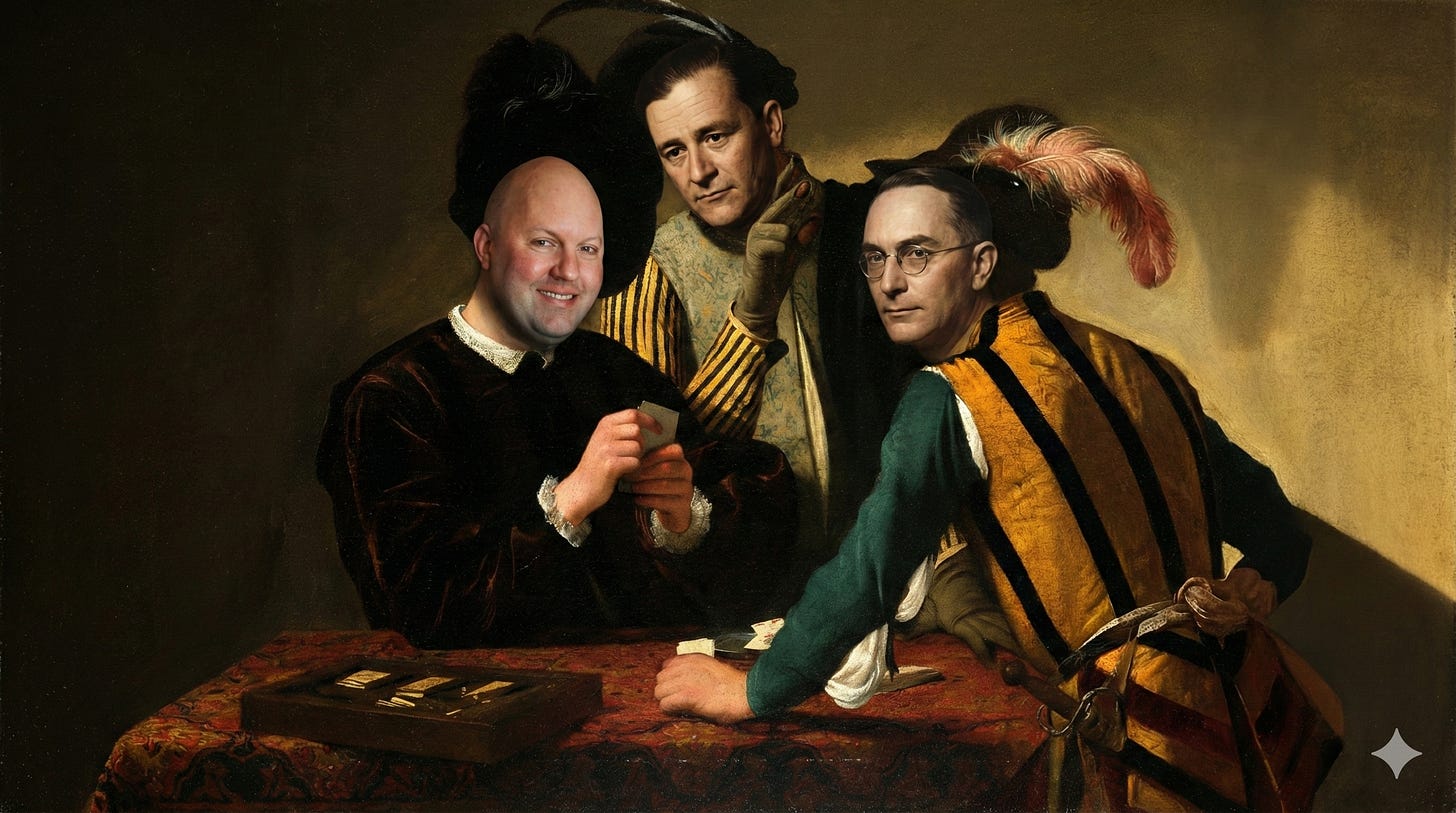 Voegelin supplies the satire. These tech bros think they’re saving the world, but they’re just reinventing old heresies with better GPUs. Imagine Schmitt and Voegelin at a TED Talk.