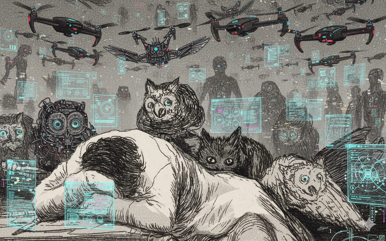 Even crypto and blockchain, heralded as liberatory, reveal monstrous undertones. Decentralized finance promises escape from centralized banking, yet scams and volatility dominate, preying on the vulnerable amid economic inequality. Tech utopians embody this duality. Visionaries who, in Gramsci’s lens, exploit the vacuum for personal hegemony. These tech-driven symptoms are products of unregulated innovation. As Puglia notes, linking to Goya, when reason sleeps, in regulatory voids, monsters arise.